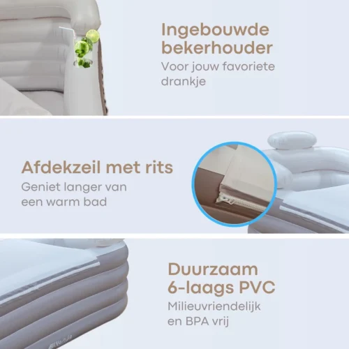 Opblaasbaar Bad – Blauw Ligbad – Zitbad Volwassenen – Ijsbad – Badkuip – Opblaasbad – Opvouwbaar Bad
