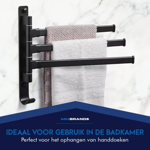Nolad® Handdoekrek 3-armig – Handdoekhouder – Handdoekenrek – Zwart