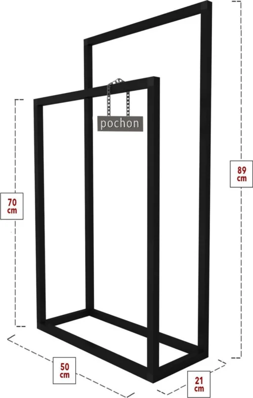 Pochon Home – Handdoekrek Metaal – Mat Zwart – Vrijstaand – Metaal – Handdoekhouder – 2 Rails