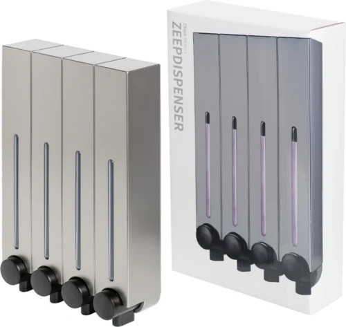 Aquathof, Zeepdispenser, RVS Kleur, 4 Kamer, 4 Reservoirs, 4x500ml, Hangend – Wandmontage