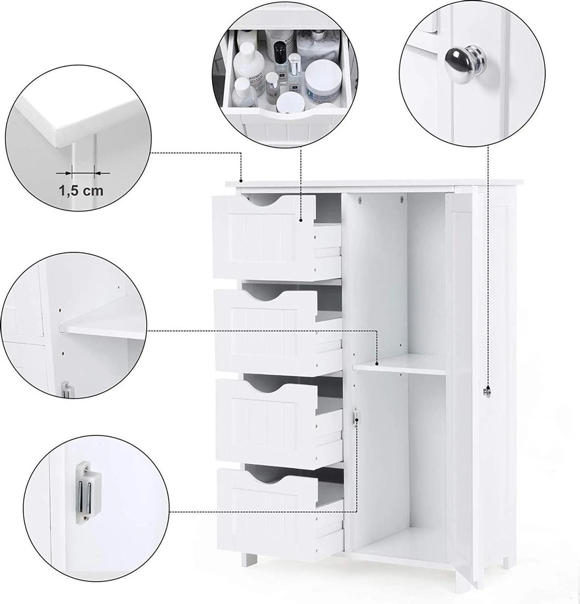 Badkamerkast, Ladekast Met 4 Schuifladen En 1 Deur, Wit, 55 X 81 X 30 Cm -Wastafelonderkast – Badkamermeubel