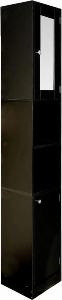 Badkamerkast – Kolomkast Badkamer Slaapkamer Of Hal – Met Spiegel – 180 Cm Hoog – Zwart