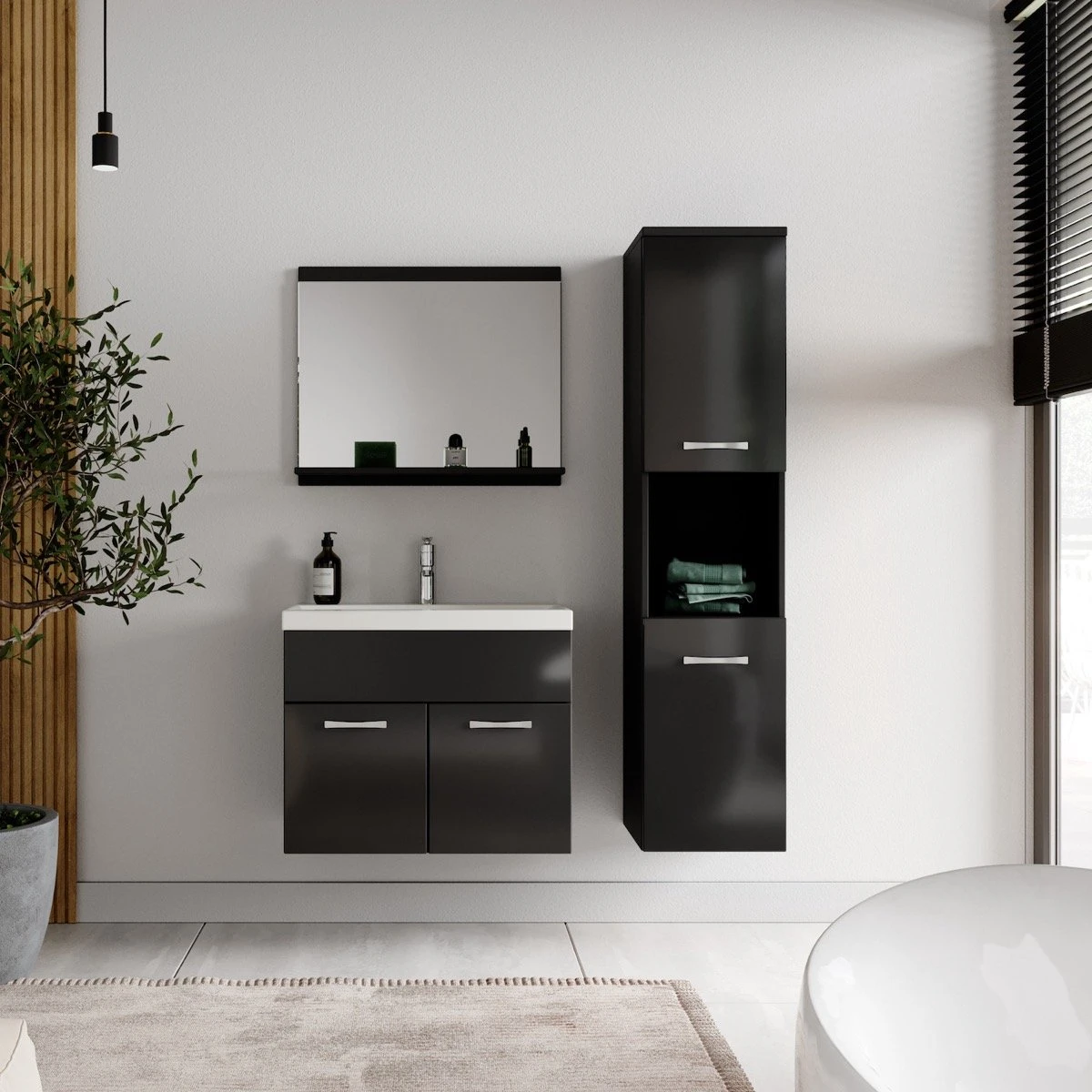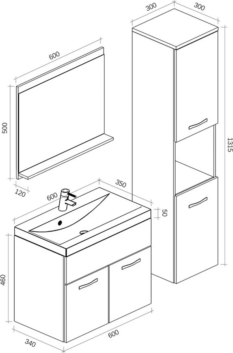 Deze set is bedoeld om iedere badkamer, groot of klein, van extra bergruimte te voorzien en een moderne en luxe uitstraling te geven.