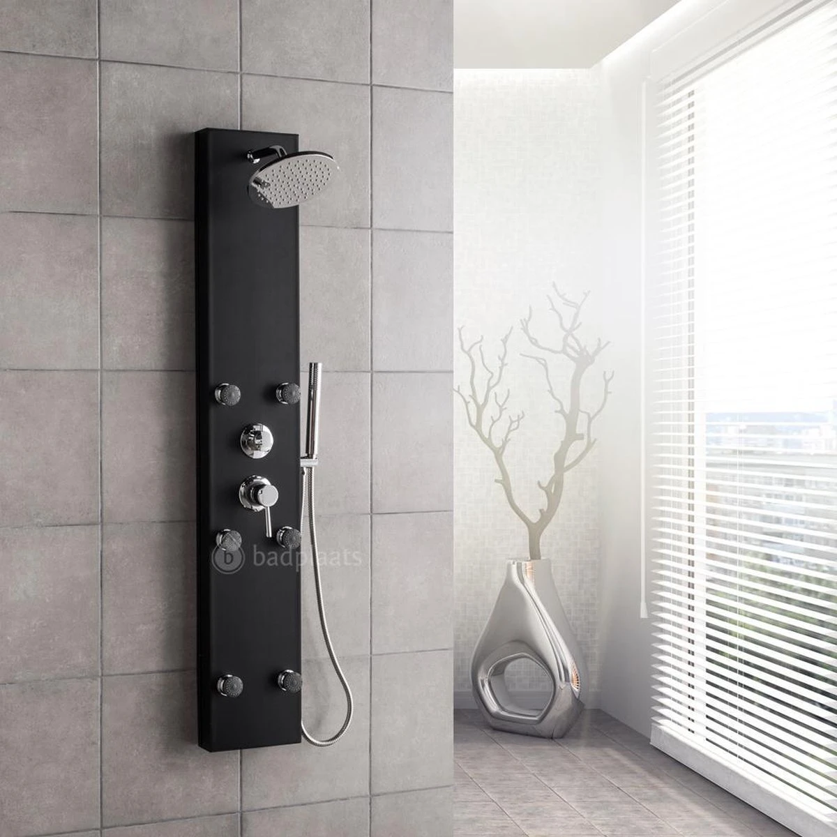Badplaats Douchepaneel Valencia – Zwart – Regendouche Met Mengkraan En Douchekop