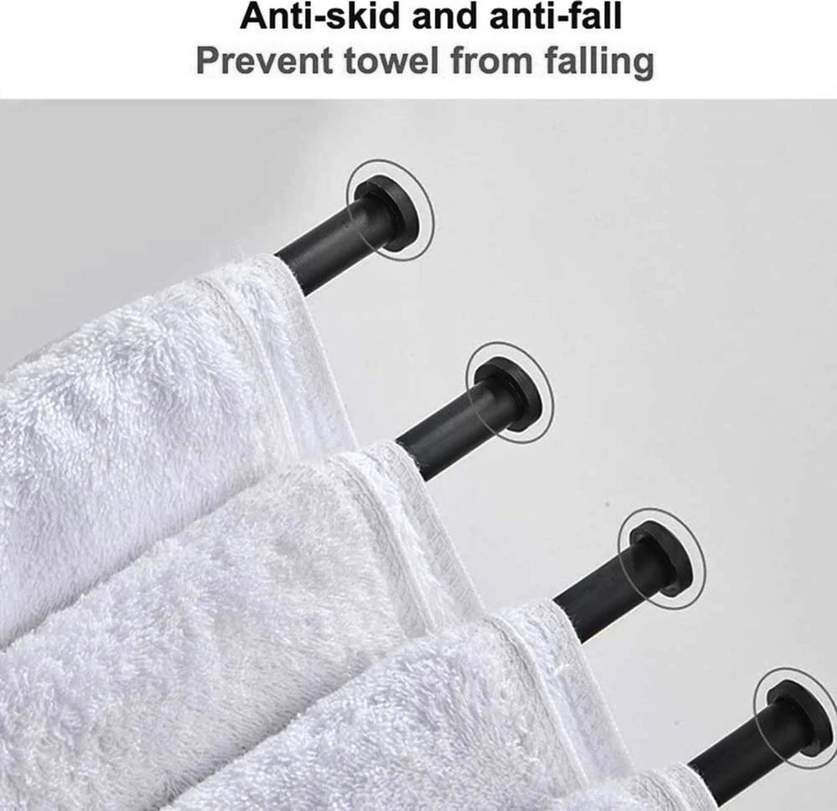 Stevig en duurzaam – Gemaakt van roestvrije materialen en SUS304 roestvrij staal, is dit handdoekenrek corrosiebestendig, duurzaam en gemakkelijk schoon te maken. Geweldige oplossing voor het organiseren van handdoeken in een kleine ruimte. Met vier stevige armen heb je extra opbergruimte voor handdoeken, washandjes en meer zonder ruimte in te nemen.