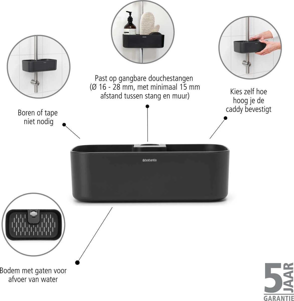 Geniet extra van je douche met deze Brabantia ReNew Doucherek – Dark Grey. Ideaal voor shampoo, douchegel en scheerspullen. Bevestig de handige opberger eenvoudig aan de douchestang op de hoogte die jij wilt. Een slimme truc om je badkamer netjes en mooi te houden.