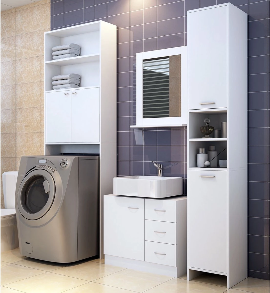 Zo heb je een licht en rustgevende plek in jouw badkamer. Rondslingerende voorwerpen zijn eenvoudig na gebruik op te bergen in de badkamerkast. Zo kun je gemakkelijk orde scheppen en heb je geen spullen meer onnodig in het zicht liggen.