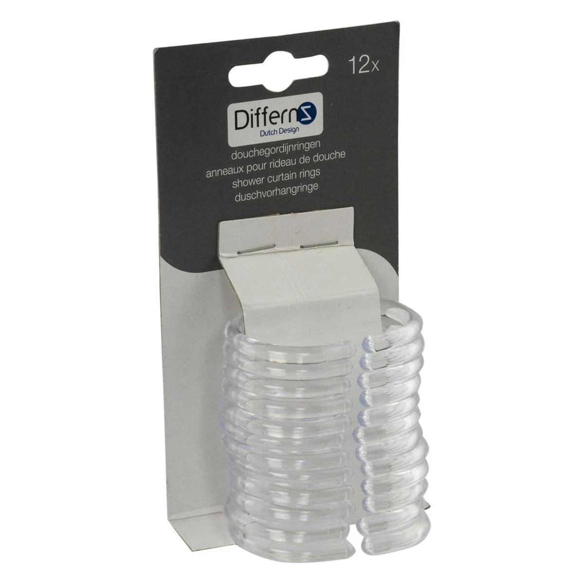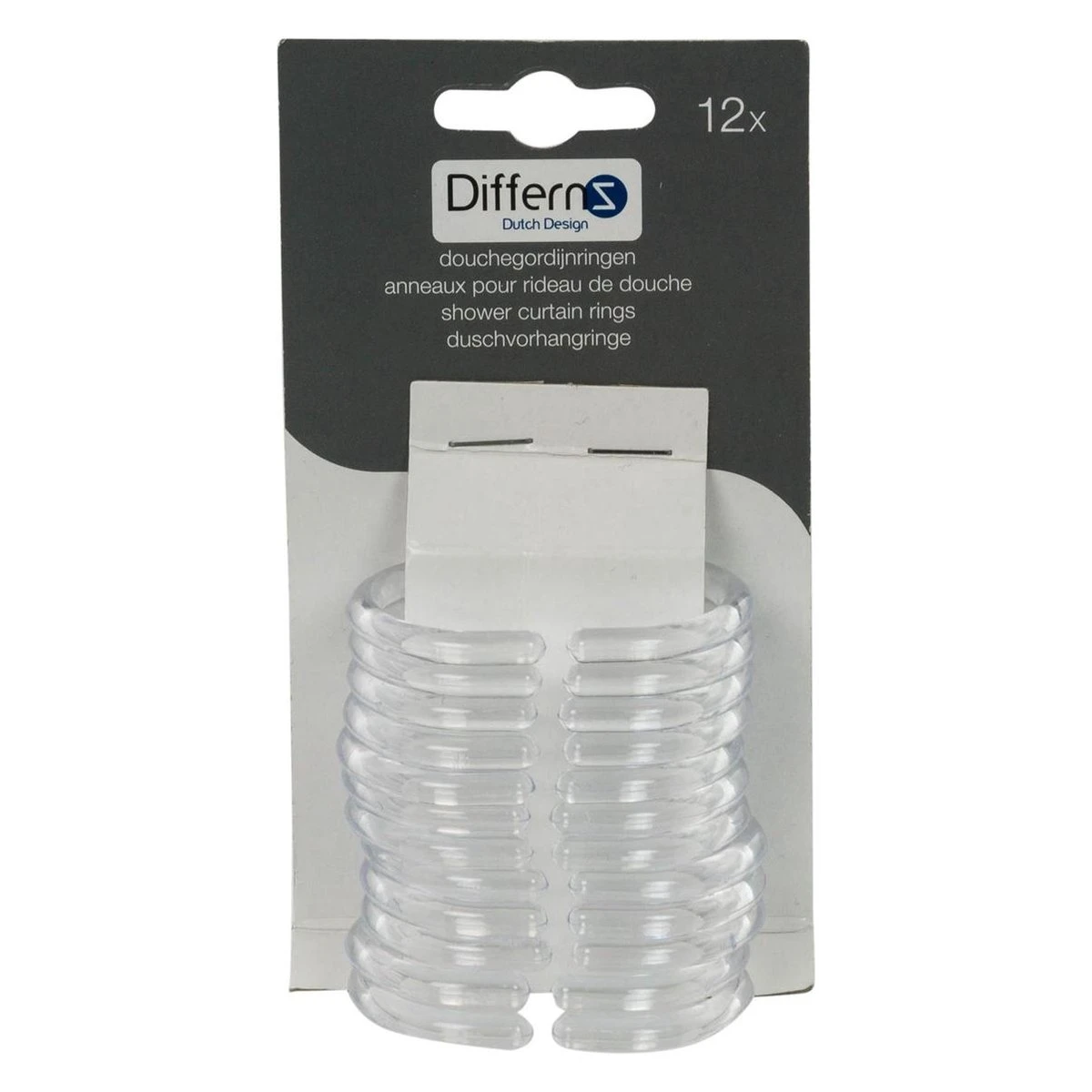 Met de Differnz ringen bevestig je elk type douchegordijn eenvoudig aan een stang. De ringen zijn van kunststof. Daardoor glijden ze gemakkelijk over de stang en zijn niet gevoelig voor vochtig. De afmeting van een ring is 6 bij 4 cm. Deze ringen passen dus op vrijwel elke stang. Door middel van een kleine opening zijn de ringen door het gordijn en de stang te halen. Deze set bestaat uit 12 ringen.