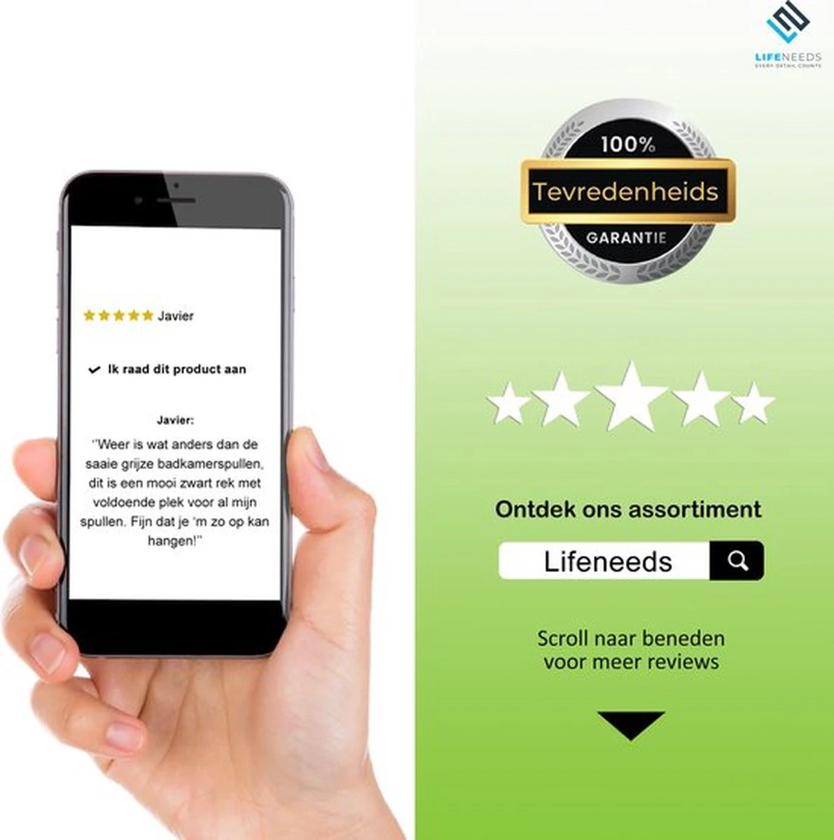 Wij geloven in de kwaliteit van onze producten en streven ernaar iedereen optimaal te kunnen helpen. Ben je niet tevreden met jouw aankoop? Wij kijken graag samen naar een gepaste oplossing waarbij je altijd recht hebt op onze 100% geld-terug garantie.