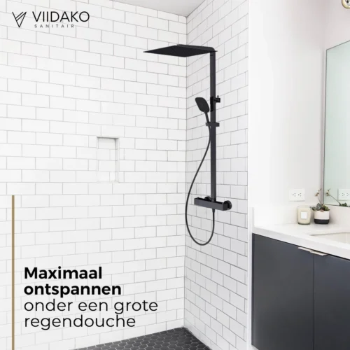 Wesseling & Bos Doucheset – Regendouche Mat Zwart – Zwarte Doucheset Met Thermostaatkraan