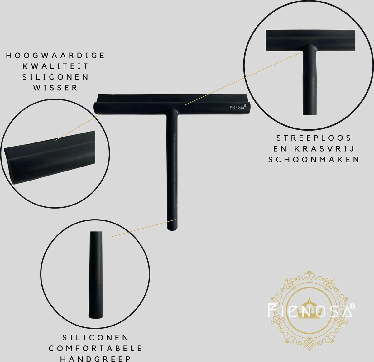 Fienosa Douchewisser Anti Kras Siliconen – Zachte Glashaak – Zwart