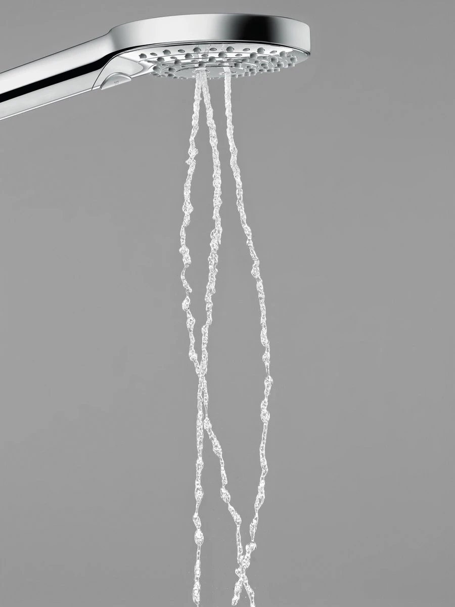 De moderne Raindance Select S doucheset biedt een compleet nieuw douchegevoel met het type PowderRain: Verheug u op de fluweelzachte microdruppels die uw lichaam omhullen als een zachte zomerse regenbui. De straalsoorten Rain met zijn verkwikkende frisse kick en de Whirl met wervelende massagestraal zijn een ideale aanvulling. U kunt de straalsoorten eenvoudig wisselen met de Select-knop op de handdouche. En met de flexibel verstelbare beugel kan de handdouche individueel op de glijstang worden geplaatst.