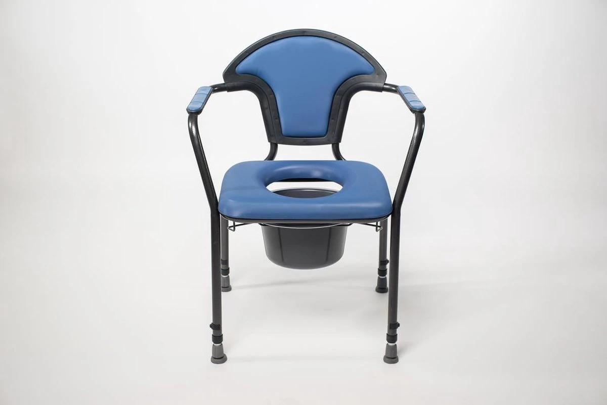 Zoekt u een toiletstoel voor gebruik in uw slaapkamer of woonkamer? Deze stoel is in hoogte verstelbaar en heeft een waterafstotende bekleding. De stoel heeft een metalen frame en twee sterke leuningen voor een goede ondersteuning. De toiletstoel is ruim en comfortabel en heeft een eenvoudig te verwijderen deksel in de zitting. Wanneer u de stoel niet gebruikt ziet u hierdoor de opening niet en kunt u hem als normale stoel gebruiken. De stoel wordt geleverd met een emmer met handvat. Door de zitting omhoog te klappen kunt u de emmer aan de bovenzijde verwijderen om hem te legen en schoon te maken. Het maximale gebruikersgewicht bedraagt 130 kg. Verkrijgbaar in de kleur blauw. Dit is een hygiene product en kan niet worden geruild.