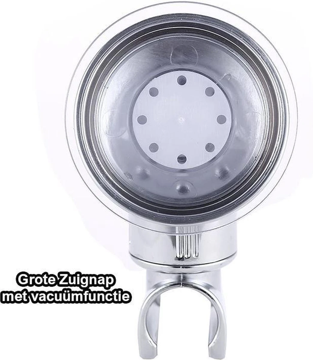 Deze douchekophouder is overal te gebruiken en eenvoudig te verplaaten zonder moeite en zonder schade aan de wand. Zet de zuignap tegen de muur, klik de hendel vacuüm naar beneden en hij is klaar voor gebruik. Vanwege de nieuwe grote zuignap van 7 cm kan aan deze houder tot wel 5 Kg. hangen.