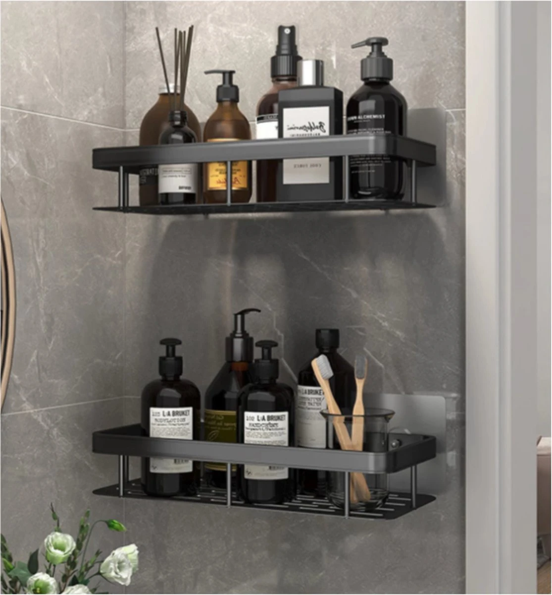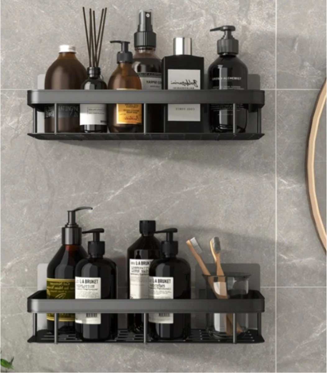 Het doucherekje is zwart van kleur en bestaat uit kunststof. Het rekje zal dus in veel badkamers mooi staan. Ook zitten er gaatjes in het wandrekje waardoor hij niet vol zal lopen met water.