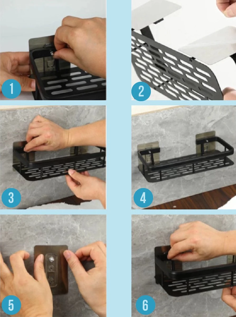 U hoeft niet te boren om het rekje te bevestigen en het rekje zal geen beschadigingen achterlaten in uw badkamer. Als u het rekje van de muur af wilt halen of wilt verplaatsen zal u dus niet zien dat het rekje daar voorheen hing. Op deze manier zal het rekje geen sporen achterlaten op uw muur of tegels.