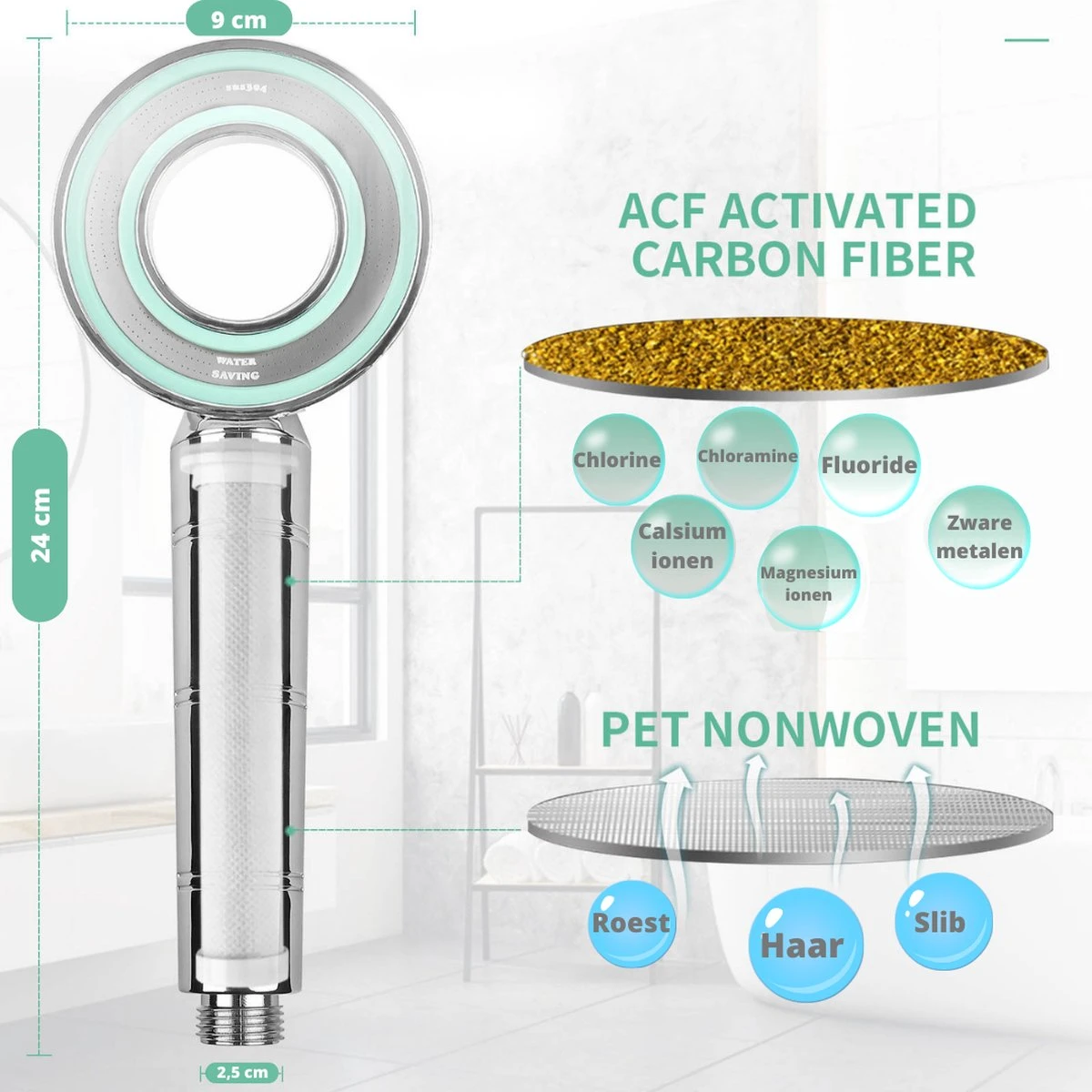 Je merkt het misschien niet tijdens het douchen, maar jouw kostbare huid wordt onbewust aangetast door ongewenste chemicaliën en fluoride vervuiling die in het water zitten. Dit kan vervelende gevolgen met zich meebrengen, denk aan een droge of geïrriteerde huid of in het ergste geval levensbedreigende ziektes. Deze met filter uitgeruste douchekop zorgt ervoor dat het water uitstekend wordt gereinigd zodat jij zonder zorgen de douche in kan. Bovendien wordt er met het nieuwe design voor gezorgd dat er enorm veel water wordt bespaard vergeleken met jouw huidige douchekop.