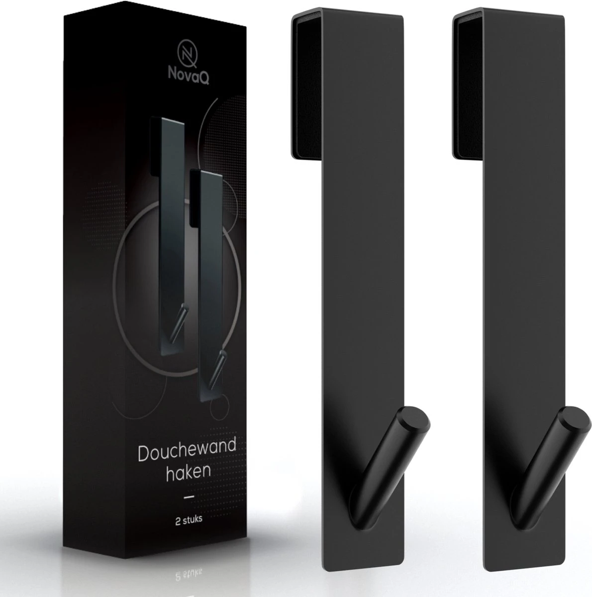 De praktische handoekhaken zijn gemaakt van RVS en voorzien van zwarte poedercoating. Door het strakke rustige design passen ze in iedere badkamer. Te installeren zonder lijm, boren. Je plaatst ze eenvoudig de douchewand of badscherm. Zo heb je je handdoek altijd bij de hand.