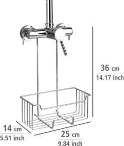 WENKO Doucherek Milo 25x36cm RVS Glanzend – Doucherek Zonder Boren – Doucherek Hangend