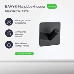 4x Zelfklevende Handdoekhaakjes Haakjes Ophanghaakjes Haken Zwart