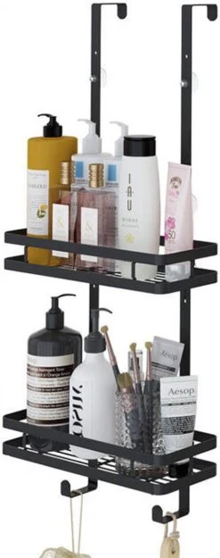 Merkloos TDR – Dubbele Toiletrol Houder – RVS – Met Geïntegreerd Goudkleurig Plankje / Planchet