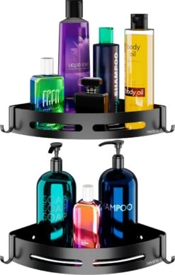 Doucherek 2 Stuks – Douchemand – Hangend Hoek – Telescopisch – Zonder Boren – Zwart – RVS