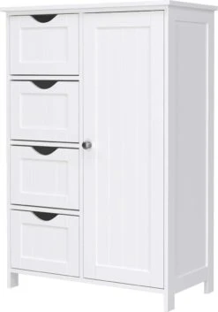 Badkamerkast, Ladekast Met 4 Schuifladen En 1 Deur, Wit, 55 X 81 X 30 Cm -Wastafelonderkast – Badkamermeubel