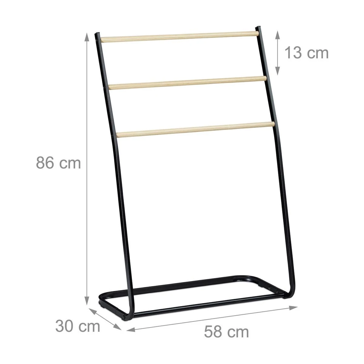 Met het staande handdoekrek kan je hand- en badhanddoeken ruimtebesparend drogen. De 3-armige handdoekladder kan vrij in de kamer geplaatst worden – zonder het vervelende boren. Het handdoekrek is snel opgebouwd en flexibel gebruikt worden. Hang bijvoorbeeld handdoeken en washandjes op de handdoekhouder. Of gebruik het ladderrek als dressboy in de gang of slaapkamer. Met zijn moderne design is de handdoekenhouder overal een echte blikvanger.