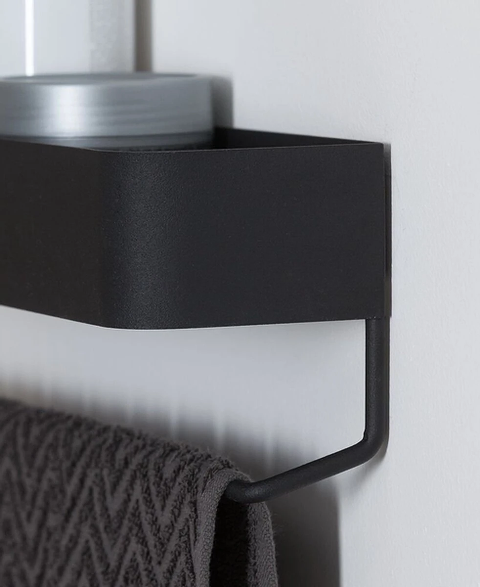 Alles voor een opgeruimde badkamer. Wij hebben de industriële look voor je geperfectioneerd. Met dit zwarte metalen wanddrek uit de Brix-serie van Sealskin kun je al jouw favoriete items een mooi plekje geven. Dankzij de rails onder de plank kun je ook diverse handdoeken kwijt. Opbergen zoals Marie Kondo het alleen kan. Niet alleen leuk te stylen in je badkamer of toilet, maar ook in je keuken!