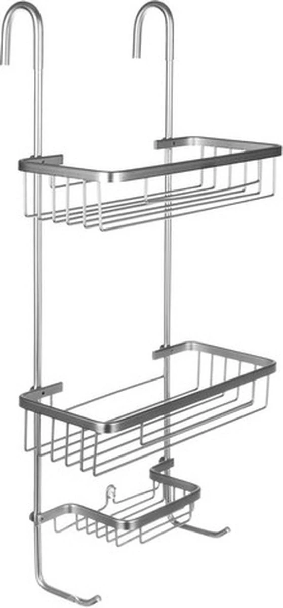 Veel doucherekjes zijn maar klein. Hierdoor is er ruimte voor te weinig shamphooflessen en andere hoognodige accessoires onder de douche. Het doucherek van SIEPS heeft hier geen moeite mee. Met 3 verdiepingen is er ruimte zat. Het middelste rekje hangt maar liefst 24 centimeter onder de bovenste. Hier is dus ook ruimte voor de grotere flessen. Nog 11 centimeter lager vindt je het laagste rekje. Hier is natuurlijk perfect ruimte voor bijvoorbeeld zeep of scheermesjes.