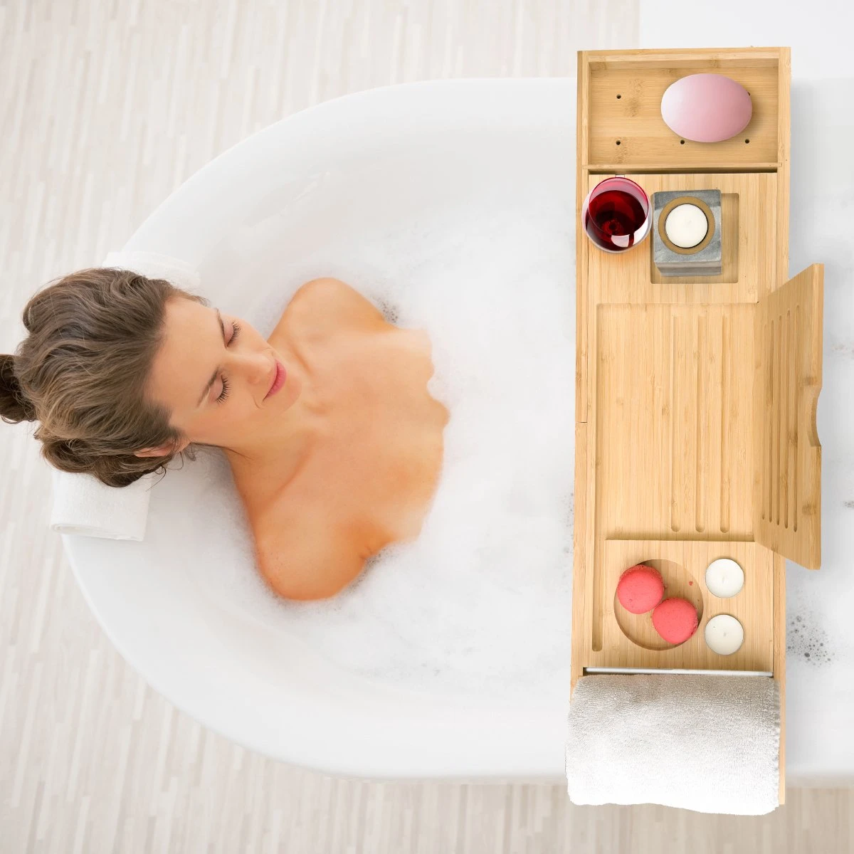 Geniet van je wel verdiende rustmoment met de badplank van Sleepydays. Met dit badplankje kun je alles kwijt wat je tijdens het badderen nodig hebt. Denk aan kaarsen, je telefoon, tablet, een (wijn)glas, zeep, handdoek en meer! En heb geen zorgen meer dat je kostbaren spullen in het water vallen door de antisliplaag!