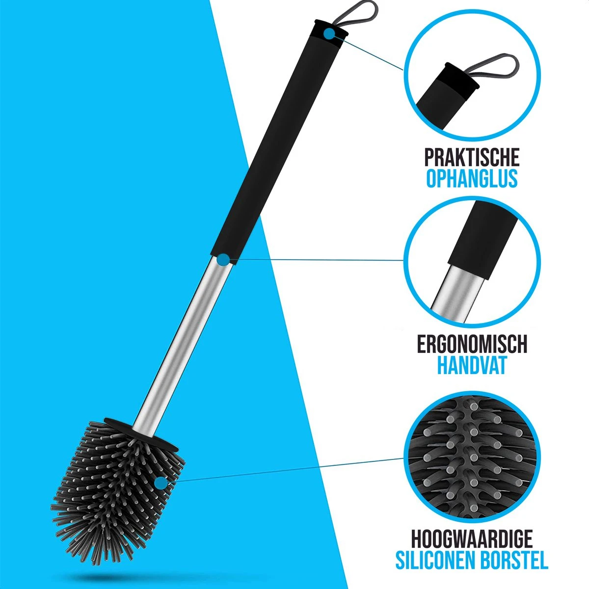 Op zoek naar een hygiënische wc borstel die stevig blijft staan? Deze siliconen toiletborstel heeft het allemaal! Met siliconen borstelharen en een flexibel ontwerp wordt elke hoek, rand of groef van jouw toilet goed bereikt. Zo blijft jouw toilet blinkend schoon, reinig je de wc-pot tot diep in de leidingen en zijn hardnekkige vlekken verleden tijd.