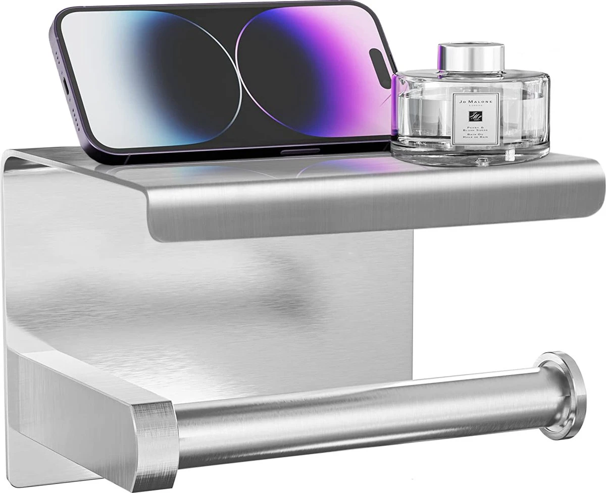 Met een handig smartphone plankje, zilveren accenten en een simpel plaksysteem is deze slimme wc-rolhouder mooi én functioneel! Deze stijlvolle toiletpapierhouder creëert extra ruimte op het toilet zodat jij comfortabel kunt genieten van een momentje voor jezelf. Wil jij je telefoon, een luchtje of extra rol wc-papier kwijt? Met dit slimme ontwerp heb jij alles binnen handbereik.