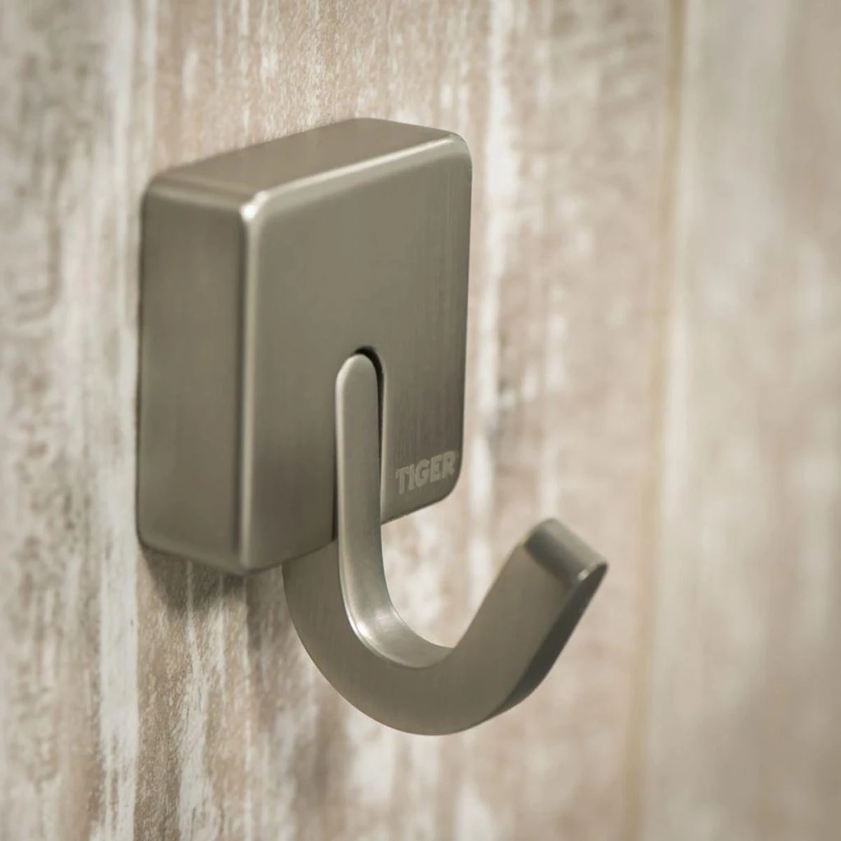 De haak uit de Tiger Impuls serie is uitgevoerd in de kleur RVS geborsteld en voorzien van dubbelzijdige tape waardoor het artikel in een handomdraai te monteren is. De haak is geschikt voor het ophangen van artikelen tot een gewicht van 1 kg. De Impuls serie bevat naast deze haak een groot aantal aanvullende accessoires voor de badkamer en het toilet.