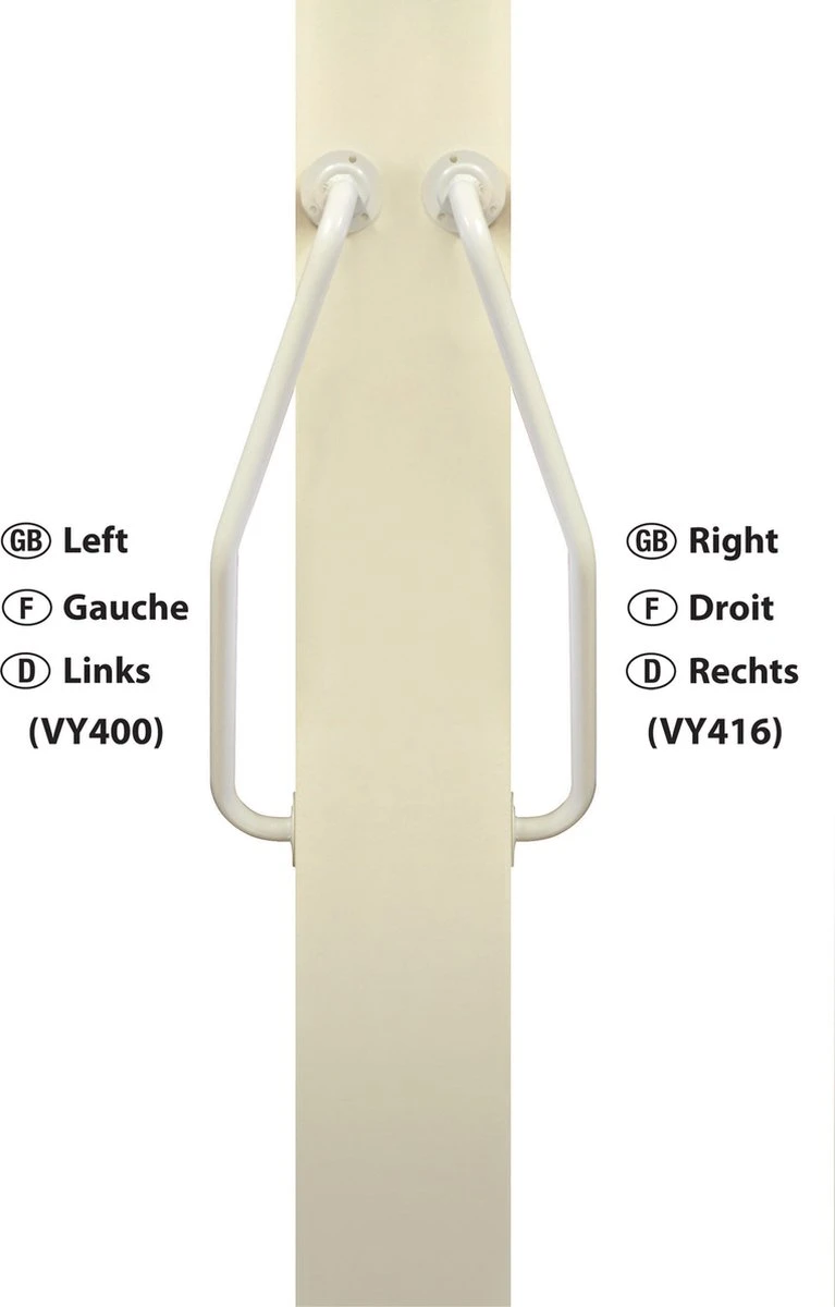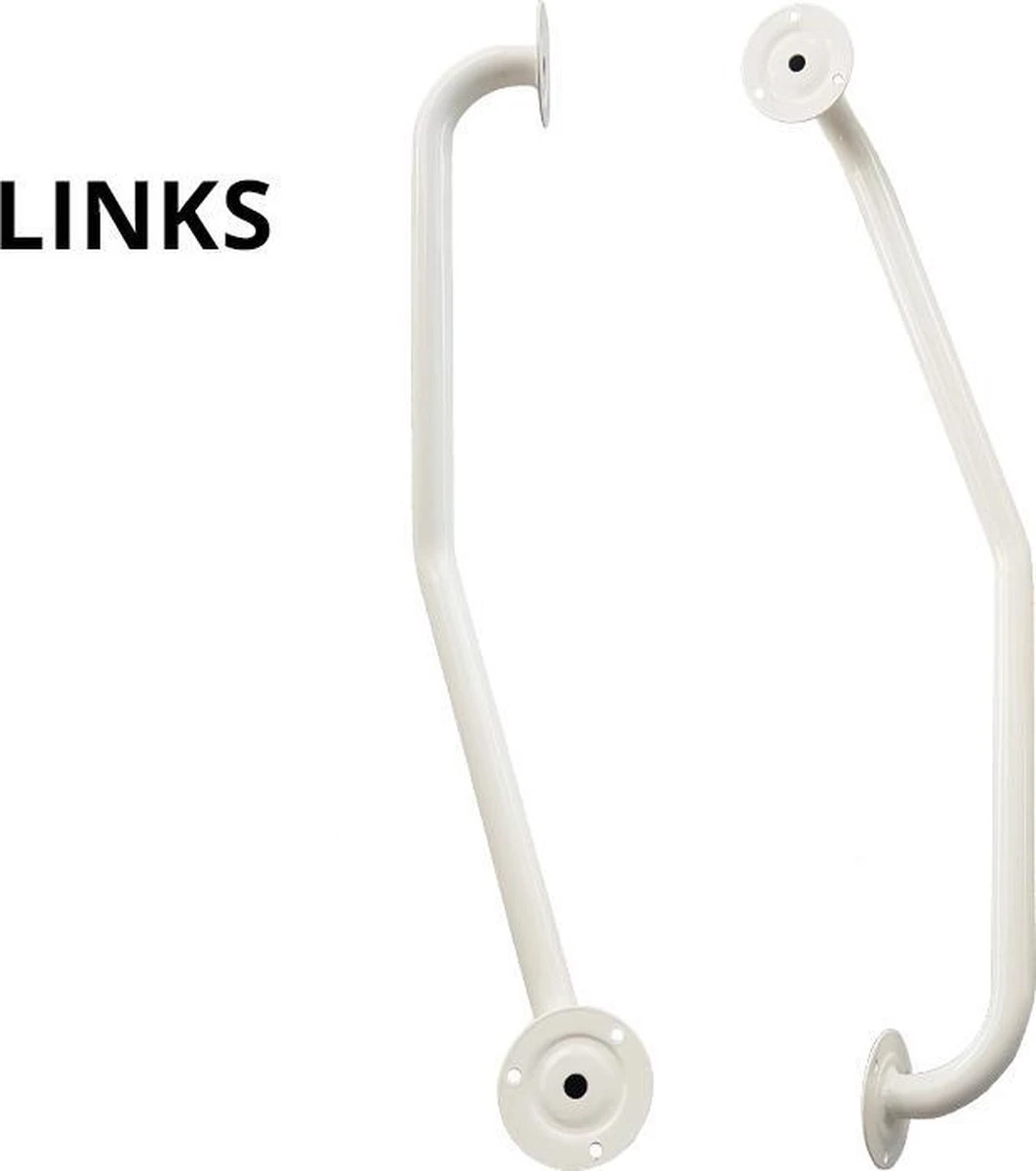 De gedraaide wandbeugel links is een gebogen handgreep die ideaal is voor de montage in portieken en trappenhuizen.
