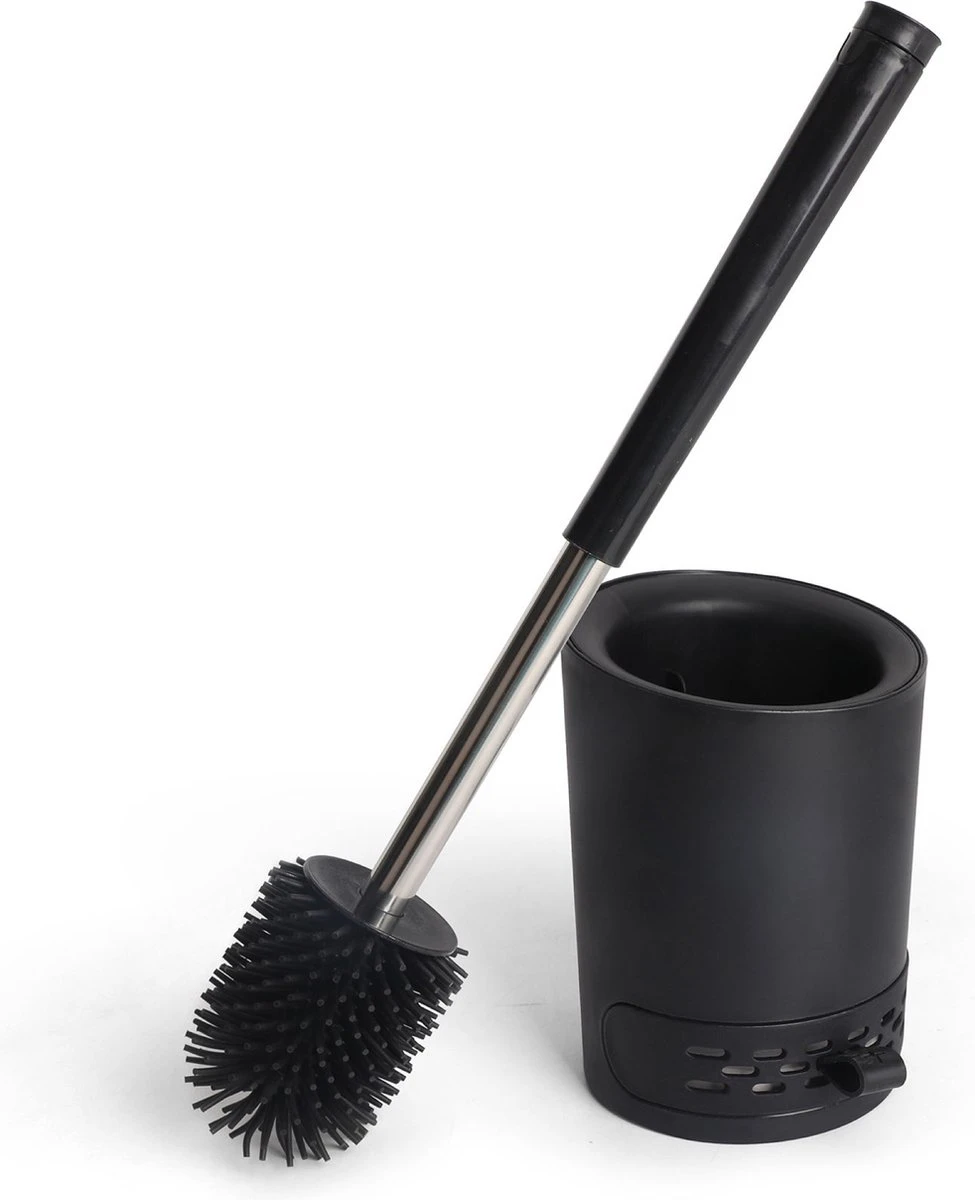 De borstelharen zijn gemaakt van een duurzaam thermoplastisch rubber en nemen daardoor geen bacteriën met zich mee de wc borstel houder in. Het positieve gevolg hiervan is dat alle viezigheden direct met het water worden doorgespoeld. Daarboven op komt nog eens dat het siliconen materiaal ervoor zorgt dat het vuil moeiteloos lostrekt waardoor je de luxe creëert van minder schrobben. Door middel van de gratis bijgeleverde plakstrip heb je ook nog eens de optie om de wc-borstel met houder op te hangen aan de muur. Breng de hygiëne en frisheid in het toilet naar een vernieuwd hoger niveau!