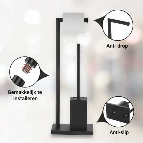 Toiletrolhouder Zonder Boren – Zwart – WC Rolhouder Zelfklevend